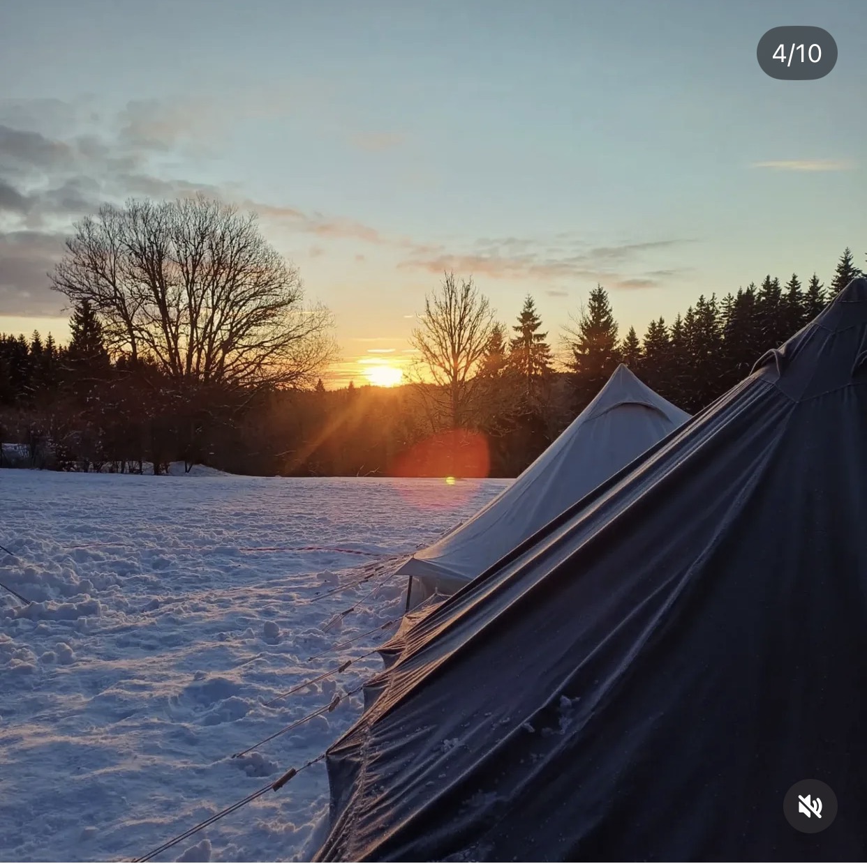 Schneelandschaft und Sonnenaufgang.